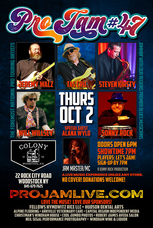 PRO JAM | A SONNY ROCK PRODUCTION | @ THE COLONY WOODSTOCK | 22 ROCK CITY ROAD | WOODSTOCK NY